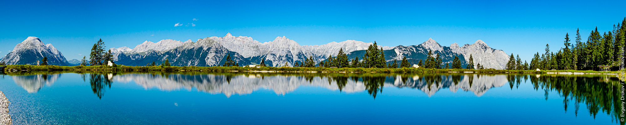 A serene alpine lake perfectly reflects the majestic snow-capped peaks. The crystal-clear water mirrors the surrounding forest and mountains, creating a breathtaking symmetrical vista. This stunning natural beauty is a testament to the power of nature's artistry.