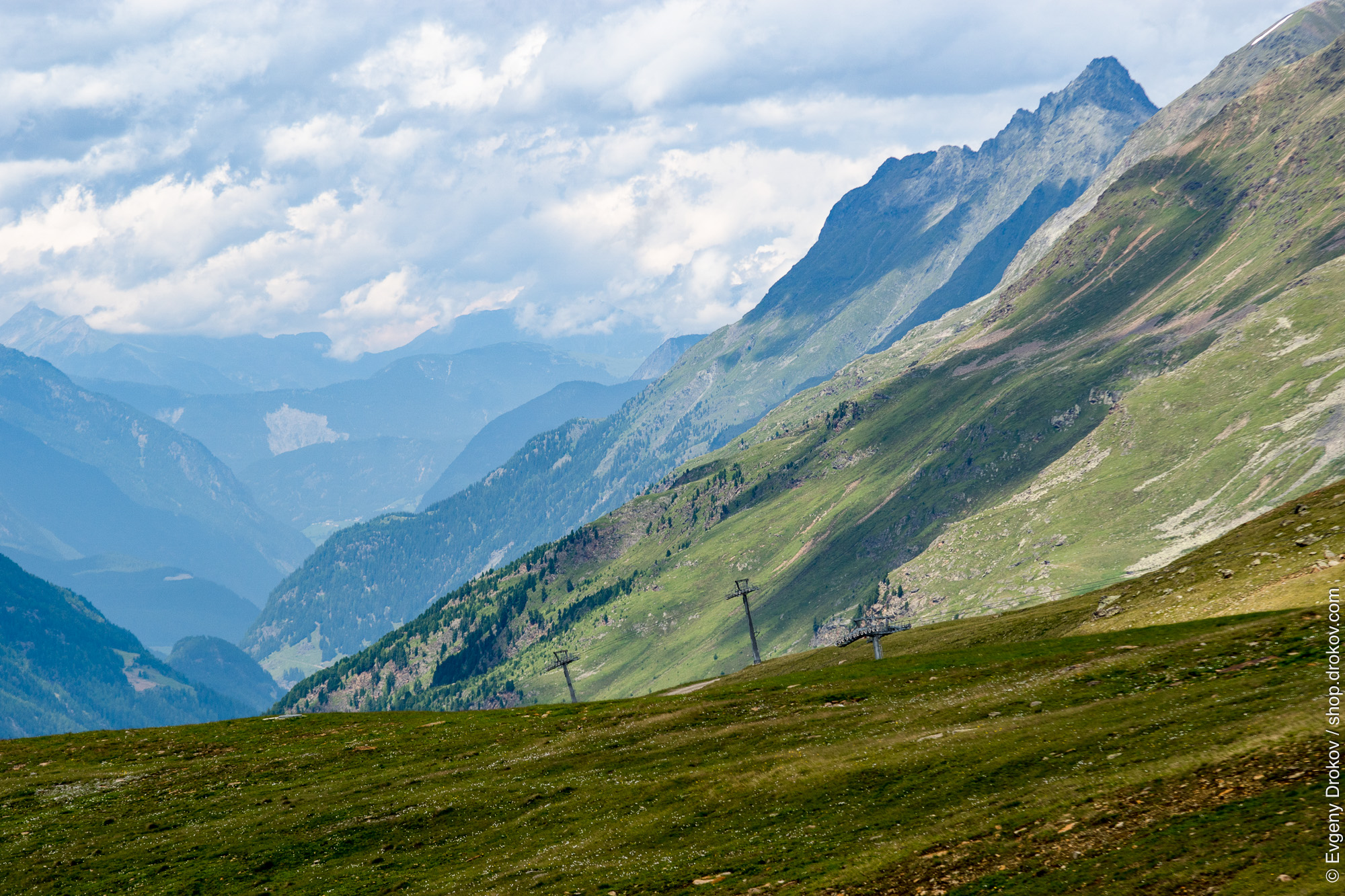 The Oetztal Alps in Tirol, Austria, present a majestic panorama. This vista, captured in Imst, showcases the rugged beauty of the mountain range, with ski lift infrastructure hinting at the recreational opportunities available. The dramatic slopes and layered peaks convey the raw, untamed nature of this alpine region.