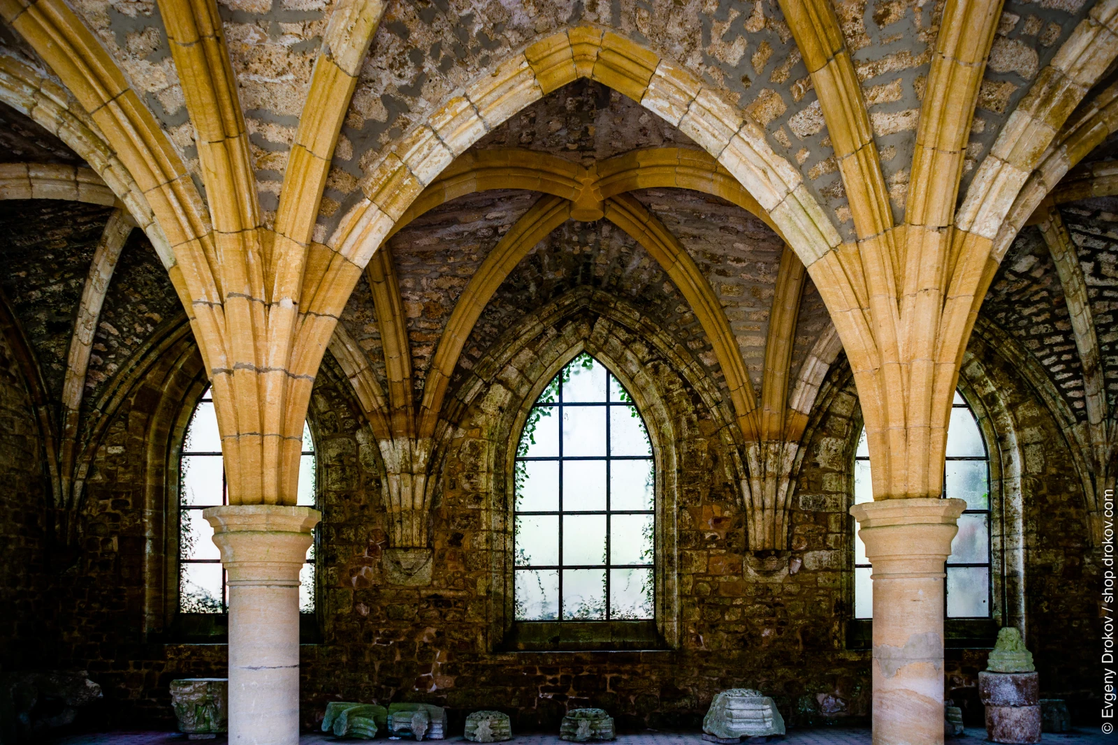 The Orval Abbey, a historic Cistercian monastery in Villers-devant-Orval, Belgium, is captured here. The vaulted architecture and stone walls reveal centuries of history and enduring craftsmanship. This visual testament to the abbey's past invites contemplation and appreciation for its architectural grandeur.