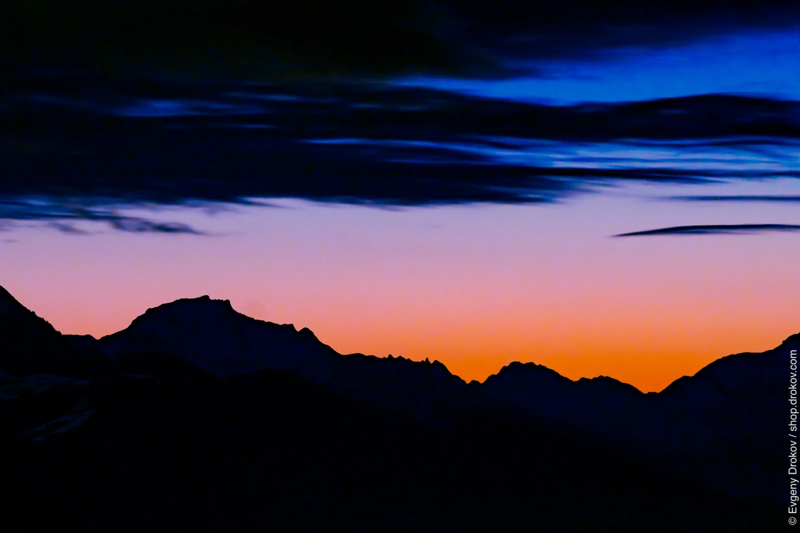 The majestic peaks of Les Arcs, France, are silhouetted against a vibrant sunset sky in January 2017. This dramatic display of natural beauty captures the awe-inspiring grandeur of the Alps.