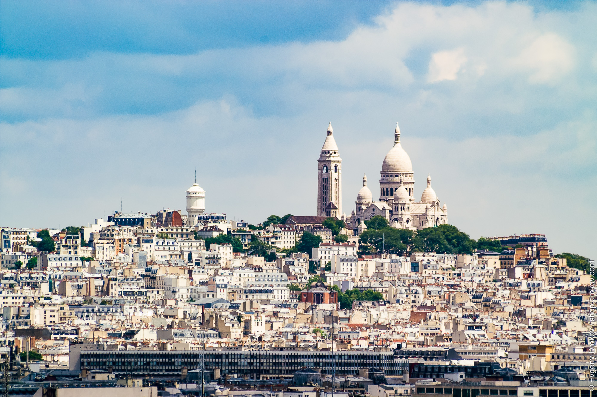 The Sacré-Cœur Basilica stands majestically over the Parisian cityscape. This iconic landmark, a symbol of faith and resilience, captures the enduring spirit of Paris, France.