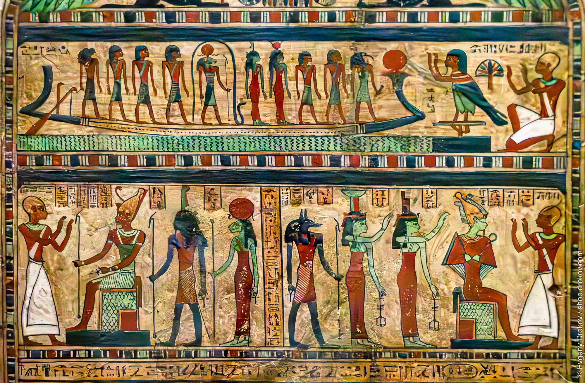 This detailed Egyptian artwork, part of the Louvre collection in Paris, France, depicts figures in procession and religious scenes. The vibrant hieroglyphs and figures offer a glimpse into ancient beliefs and daily life.