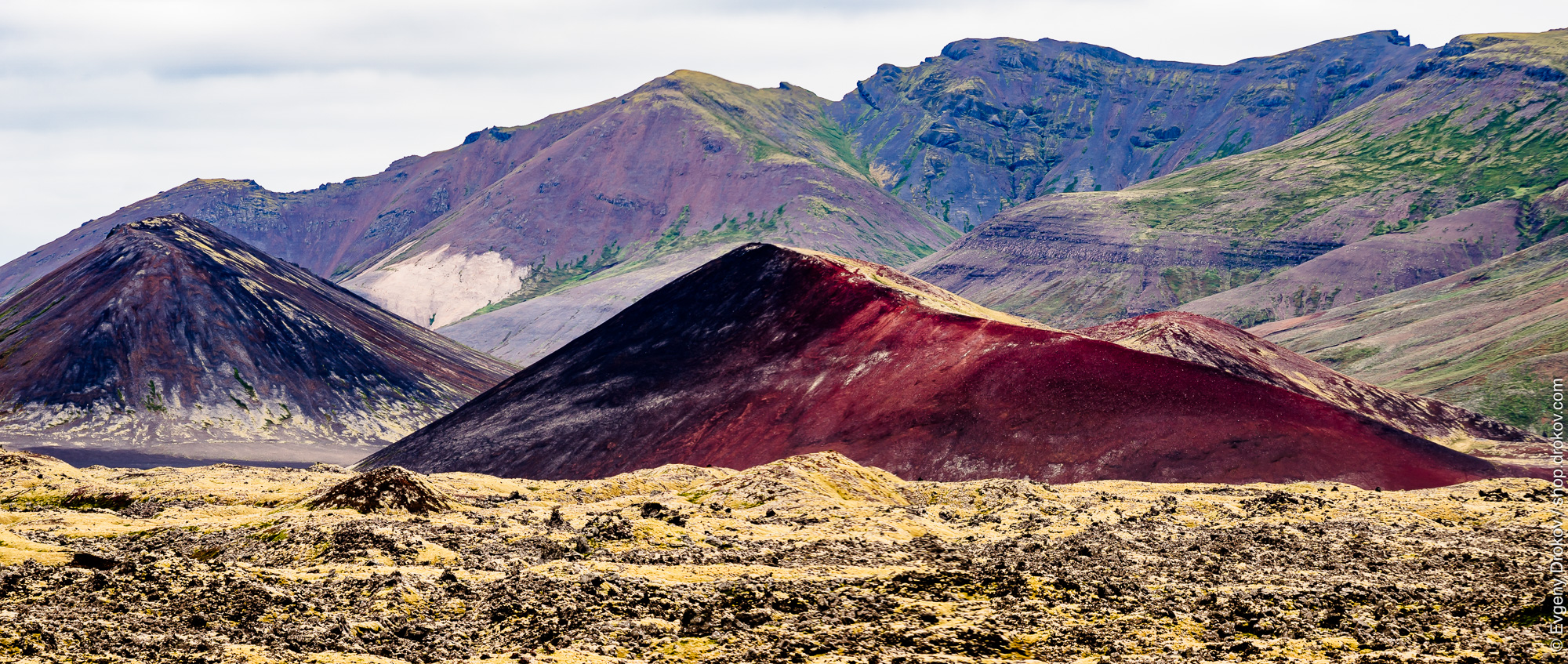 The dramatic, multi-hued volcanic landscape of Stykkishólmur, Helgafellssveit, Iceland, captured in August 2017, showcases the raw geological power of the region.