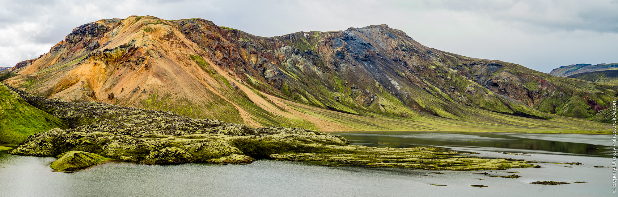 Witness the raw power of Icelandic Majesty. This striking vista in Iceland's Southern Region showcases volcanic rock in vibrant hues against a tranquil lake, a testament to nature's artistry. This commanding landscape is destined for your walls.