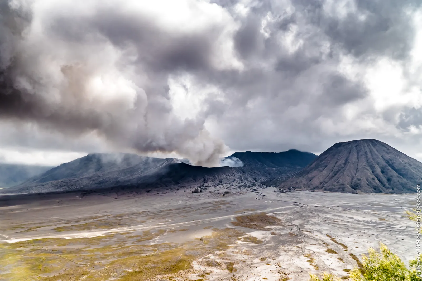Volcano Bromo erupts, spewing ash and smoke into the sky over East Java, Indonesia, in January 2016. This powerful display of nature's force was captured from Cemoro Lawang.