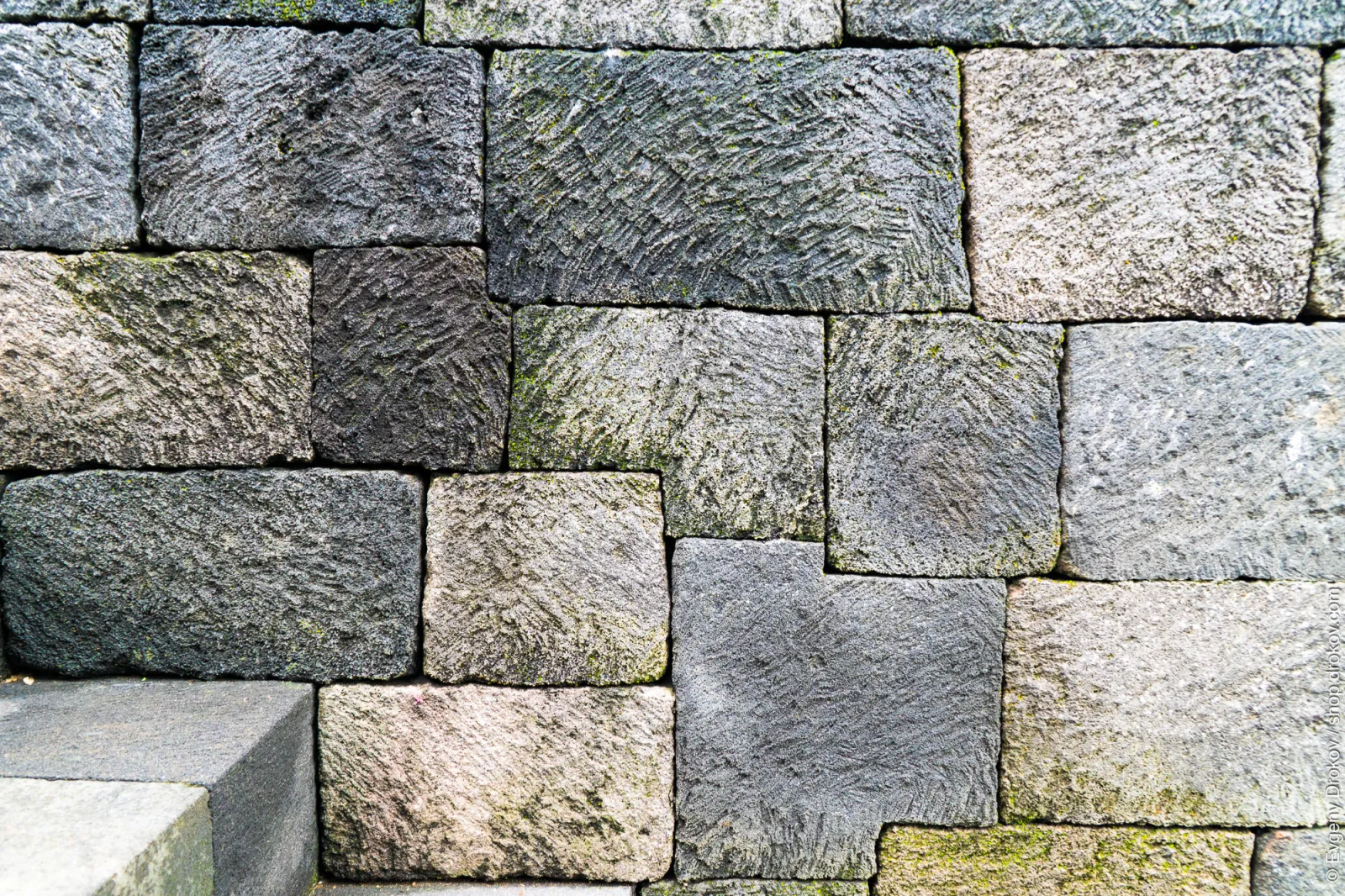 The ancient stone construction of Borobudur temple in Magelang, Central Java, Indonesia, is showcased. This detail highlights the enduring craftsmanship and historical significance of this UNESCO World Heritage site.