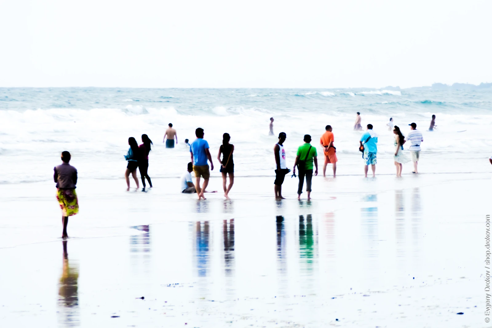 People enjoy a day at Kuta Beach, Bali, Indonesia. The vibrant atmosphere captures the essence of a tropical getaway, with individuals relaxing and engaging with the ocean.