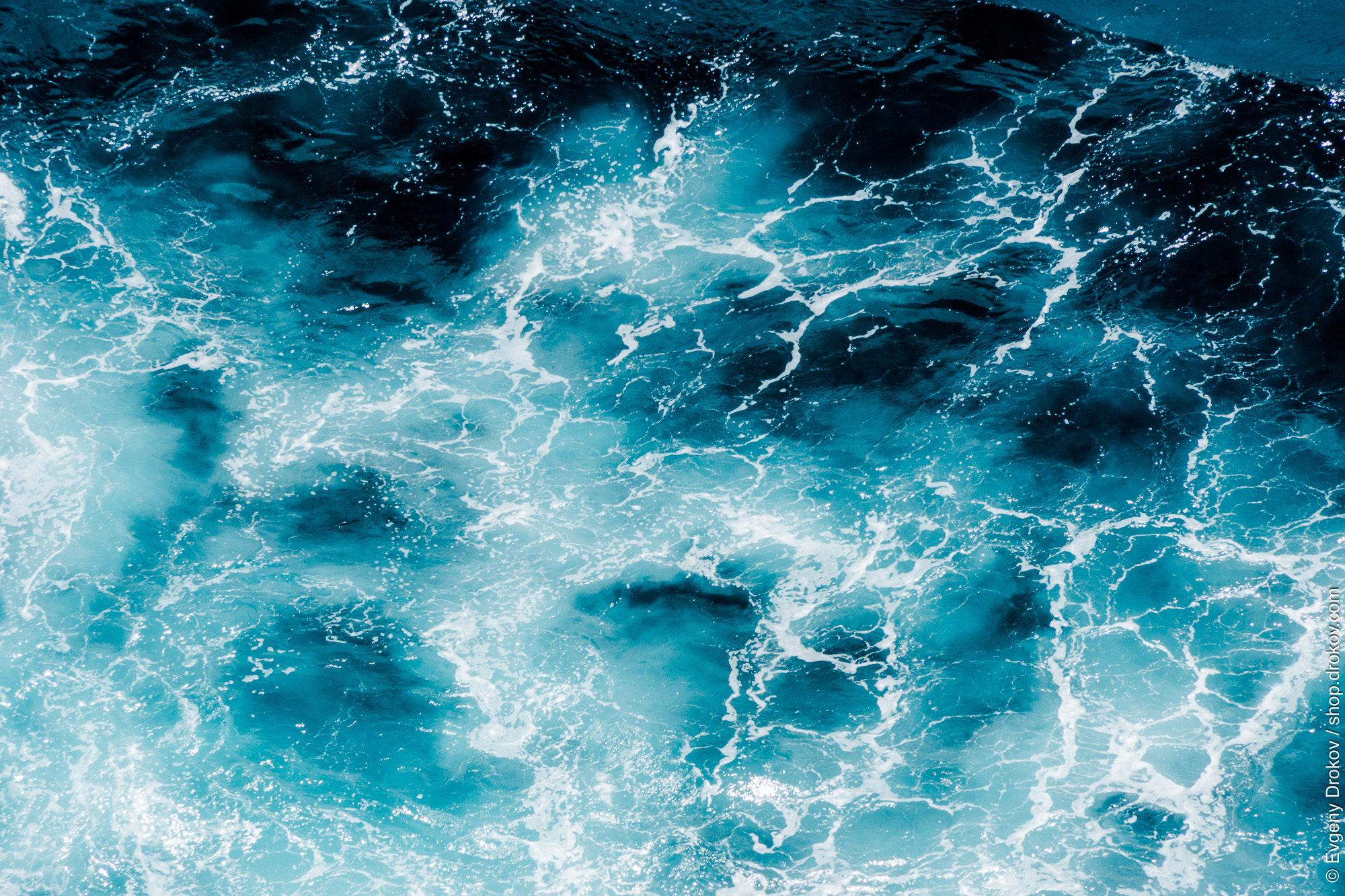 The dynamic turquoise waters off Pura Luhur Uluwatu in Bali, Indonesia, are captured in this striking composition. The churning waves, a testament to the ocean's raw power, create intricate patterns of white foam against the deep blue. This visual narrative highlights the dramatic beauty of the Balinese coastline.