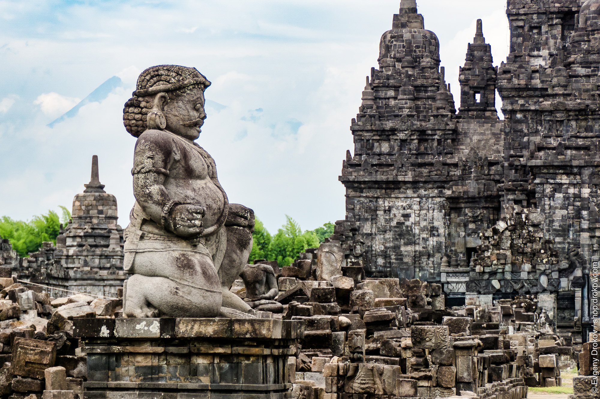 A stone guardian statue stands sentinel at the ancient Prambanan temple complex in Yogyakarta, Indonesia, January 2016. This monumental structure, a testament to historical artistry, draws visitors to explore its rich cultural heritage.