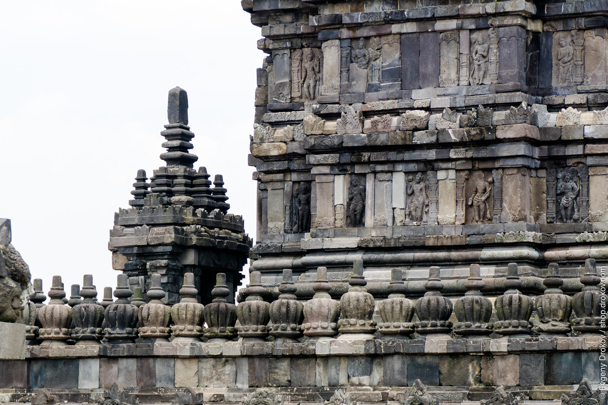 The ancient stone carvings of Prambanan Temple in Yogyakarta, Indonesia, stand as a testament to rich cultural heritage. Captured in January 2016, this detailed view showcases the intricate artistry and enduring architecture of this UNESCO World Heritage site.