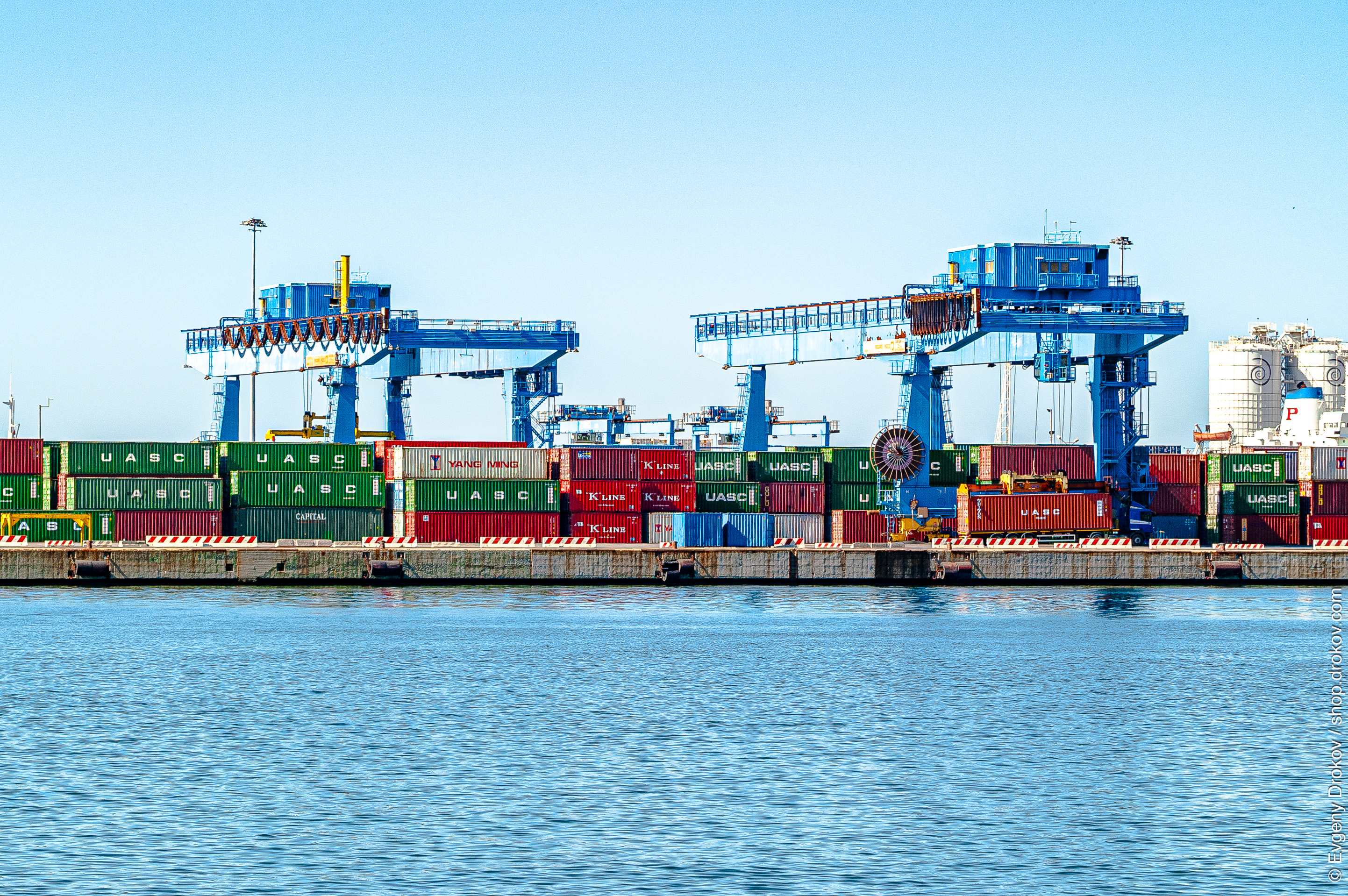 Genoa, Italy, May. Massive cranes stand ready to unload shipping containers at the port. This vital hub facilitates global trade, moving goods efficiently across the seas.
