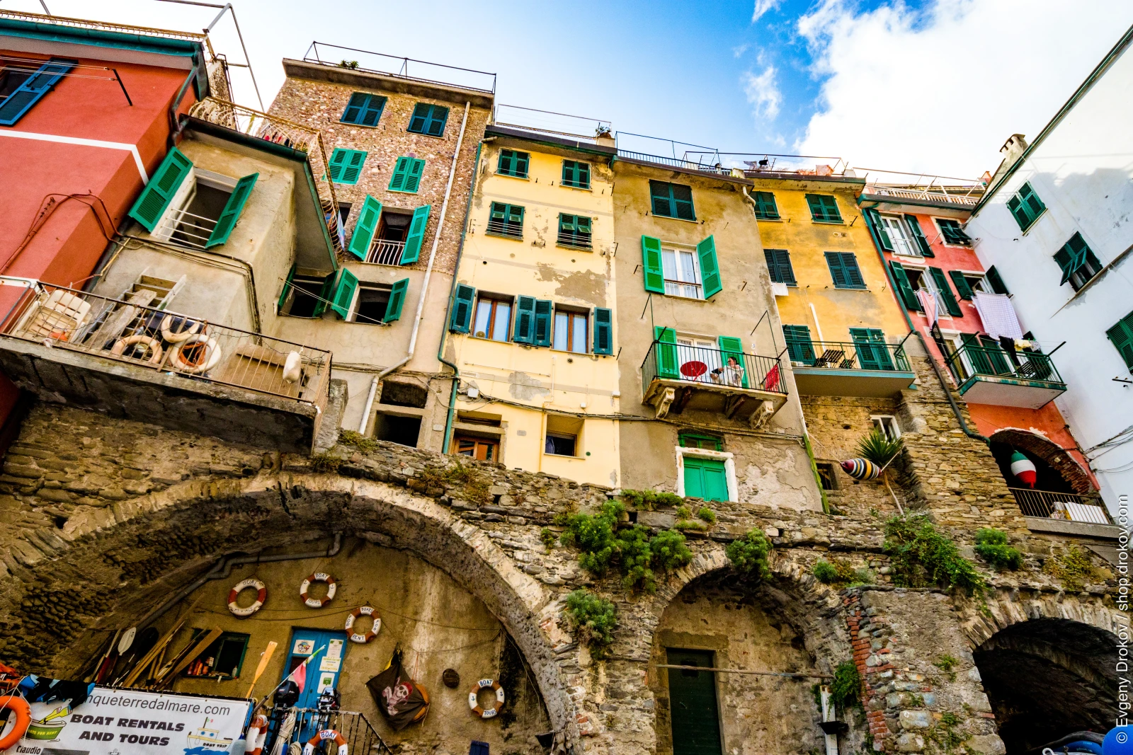 This is Manarola, Italy, the second-smallest of the Cinque Terre towns. The vibrant, stacked buildings showcase the unique architecture of this coastal village. The scene captures the essence of Italian seaside life.