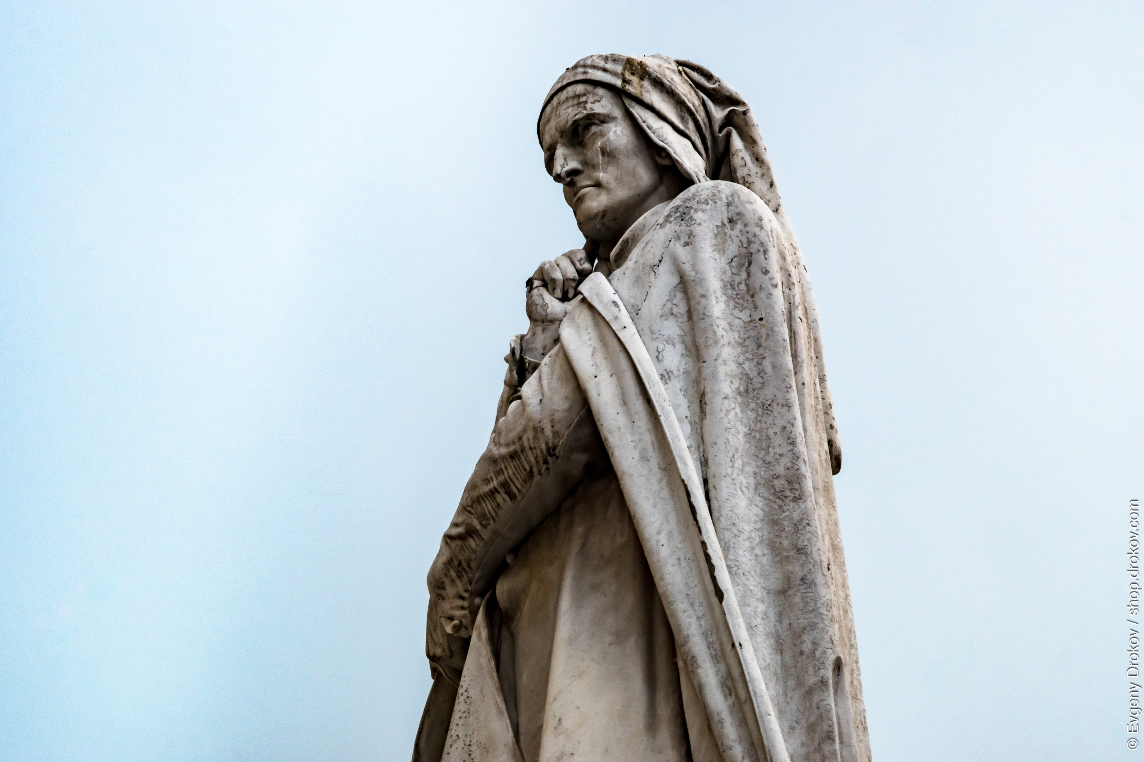 This is a statue of Dante Alighieri in Verona, Italy. The monument honors the renowned poet, author of the Divine Comedy, who was exiled from Florence and spent time in Verona.