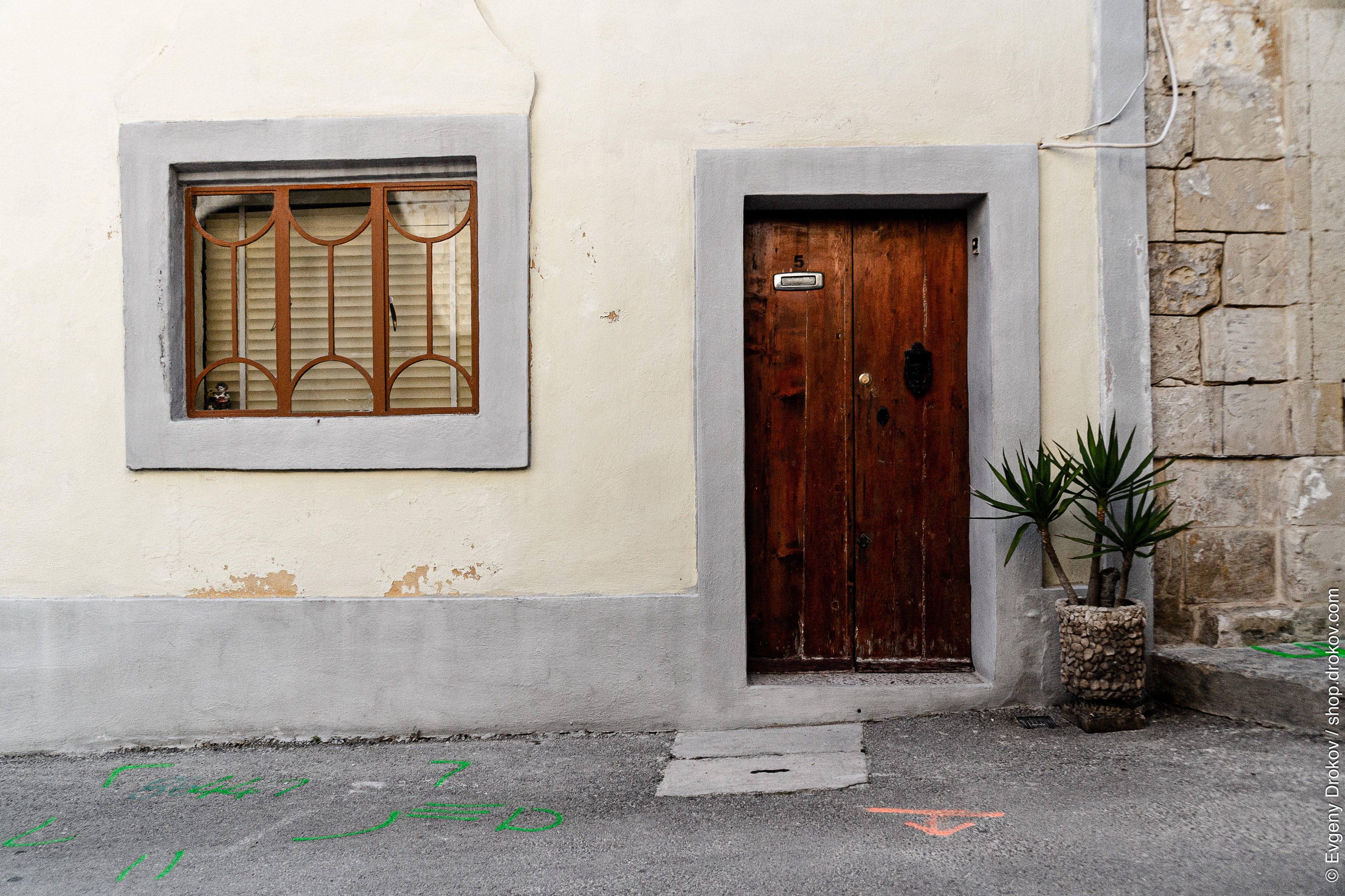 This is a close-up of a weathered wooden door and a window on a building in Is-Siġġiewi, Malta. The composition highlights the textures and architectural details of the location, inviting viewers to imagine the stories held within.