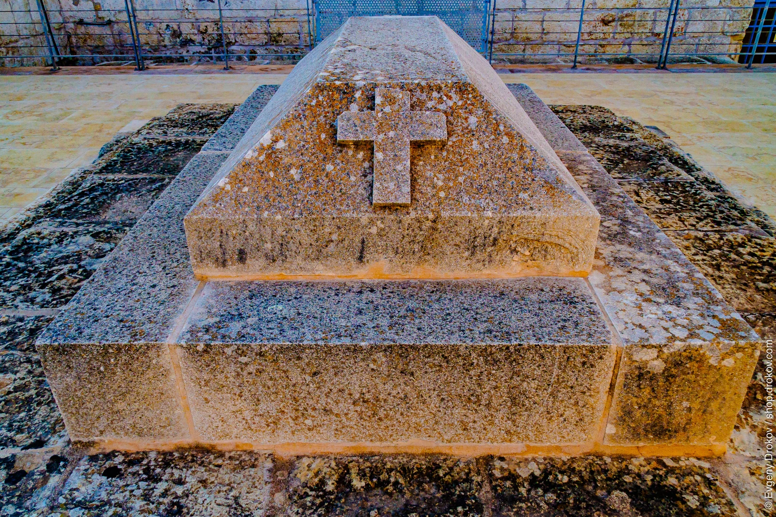 This is a stone monument with a cross, located at Fort St. Angelo in Birgu, Malta. The monument stands as a testament to the fort's historical significance and its enduring legacy.