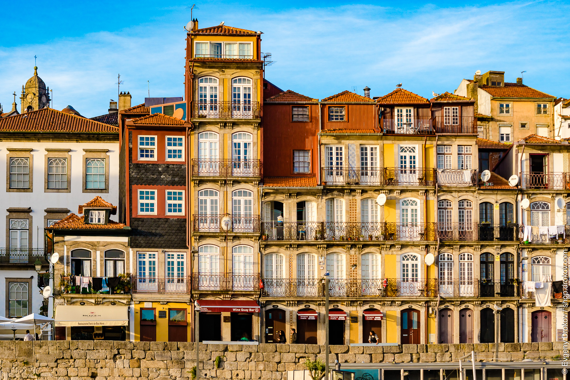 The vibrant facades of Porto, Portugal, stand illuminated by the late afternoon sun. This architectural display captures the essence of the city in November, showcasing its rich history and lively atmosphere.