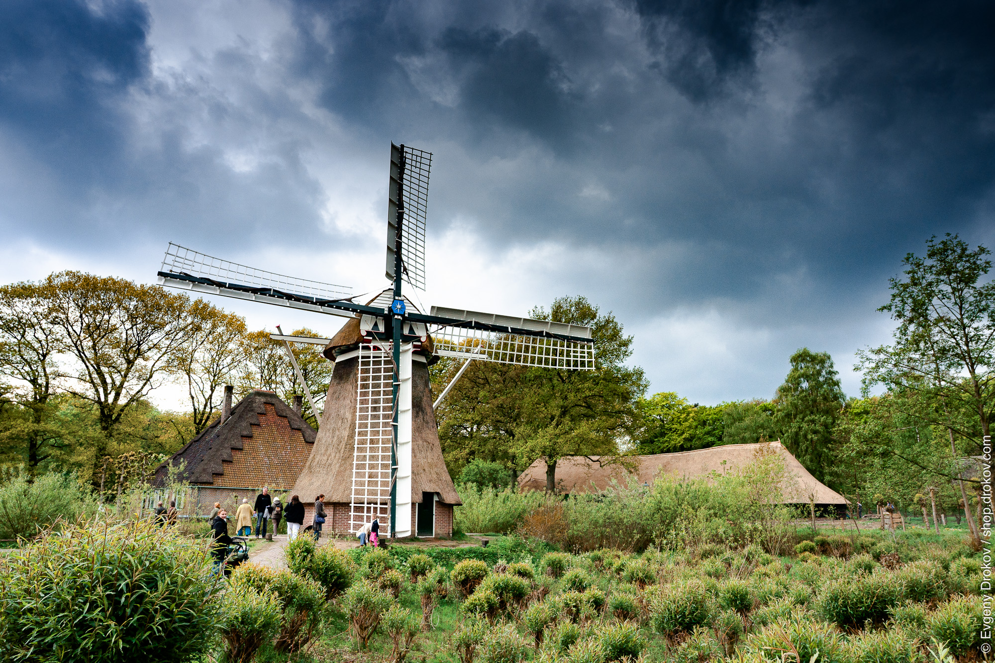 Visitors explore the historic Openluchtmuseum in Arnhem, Gelderland, The Netherlands. This iconic windmill stands as a testament to Dutch heritage, offering a glimpse into the past.