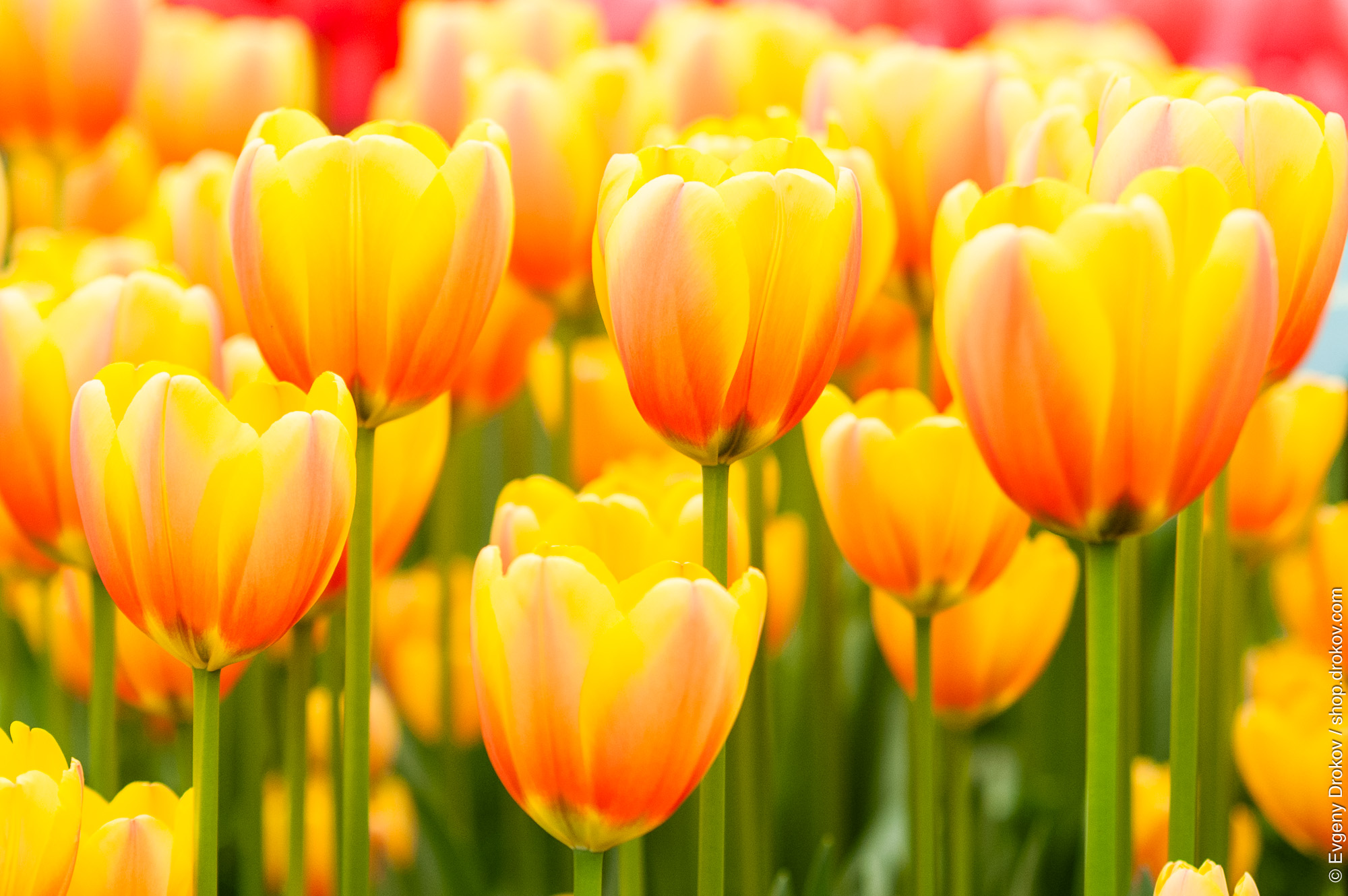 Vibrant yellow and orange tulips bloom in abundance at Keukenhof Flower Park in Lisse, The Netherlands, during the 2010 season. This display captures the breathtaking beauty of spring in Zuid Holland.