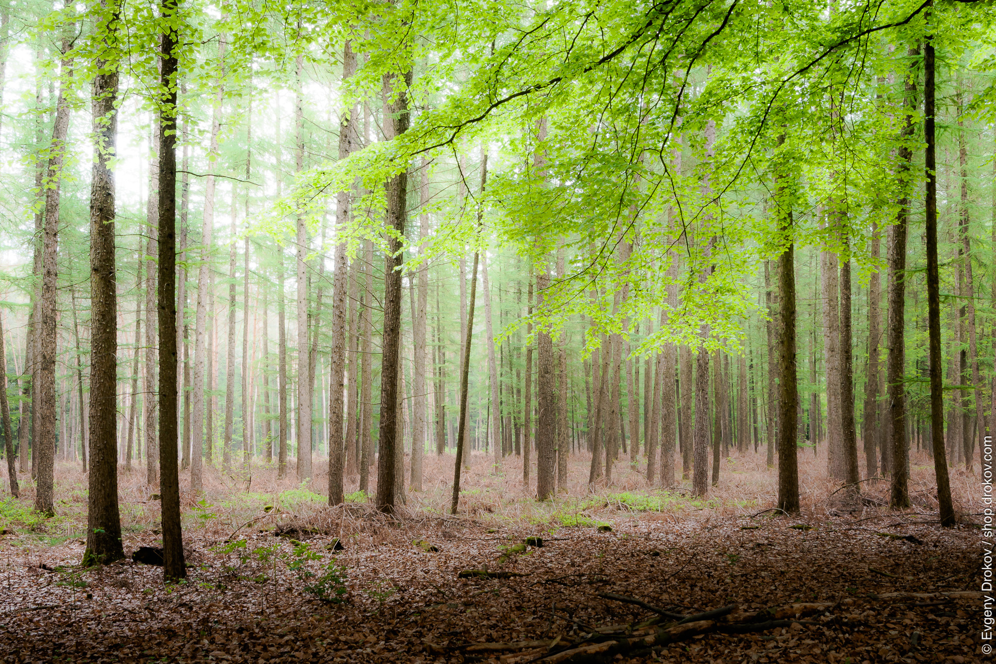 A serene forest floor at Cardanusgronden in Oosterbeek, Gelderland, The Netherlands. The dense canopy of vibrant green leaves filters the light, creating a tranquil atmosphere. This natural setting invites contemplation and appreciation for the beauty of the Dutch woodlands.