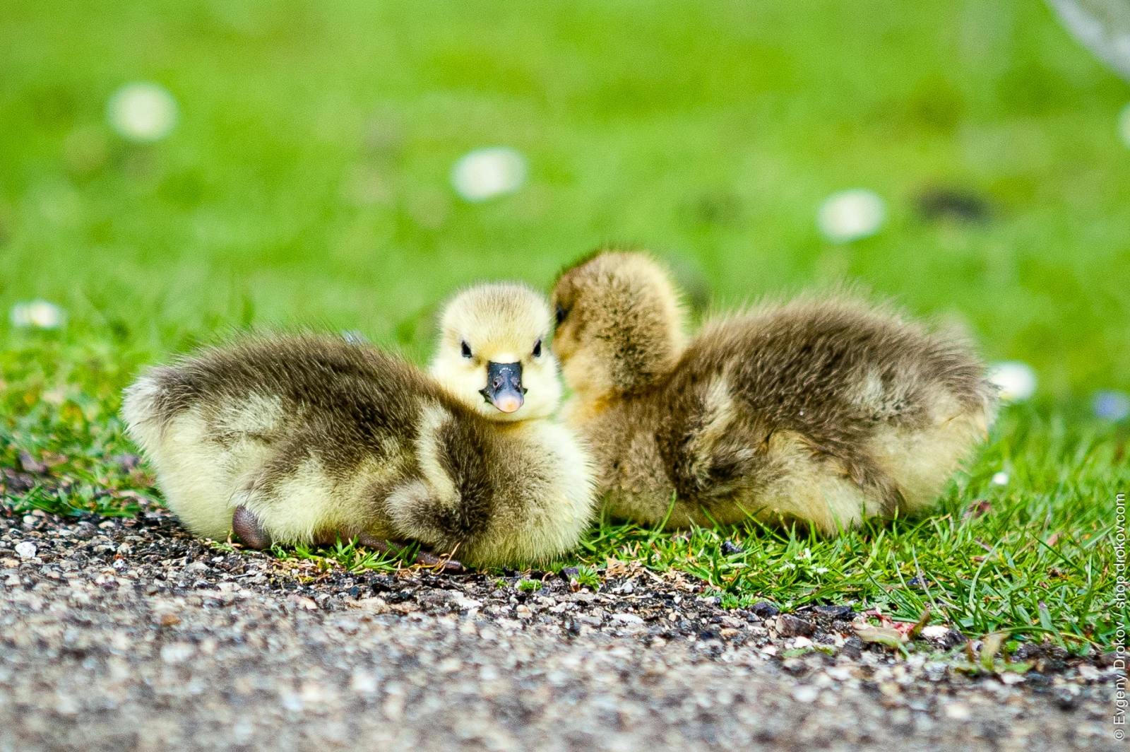 Two fluffy goslings huddle together in Rotterdam Park, Zuid Holland, The Netherlands, during April. Their presence signifies the vibrant arrival of spring and the continuation of nature's cycle.
