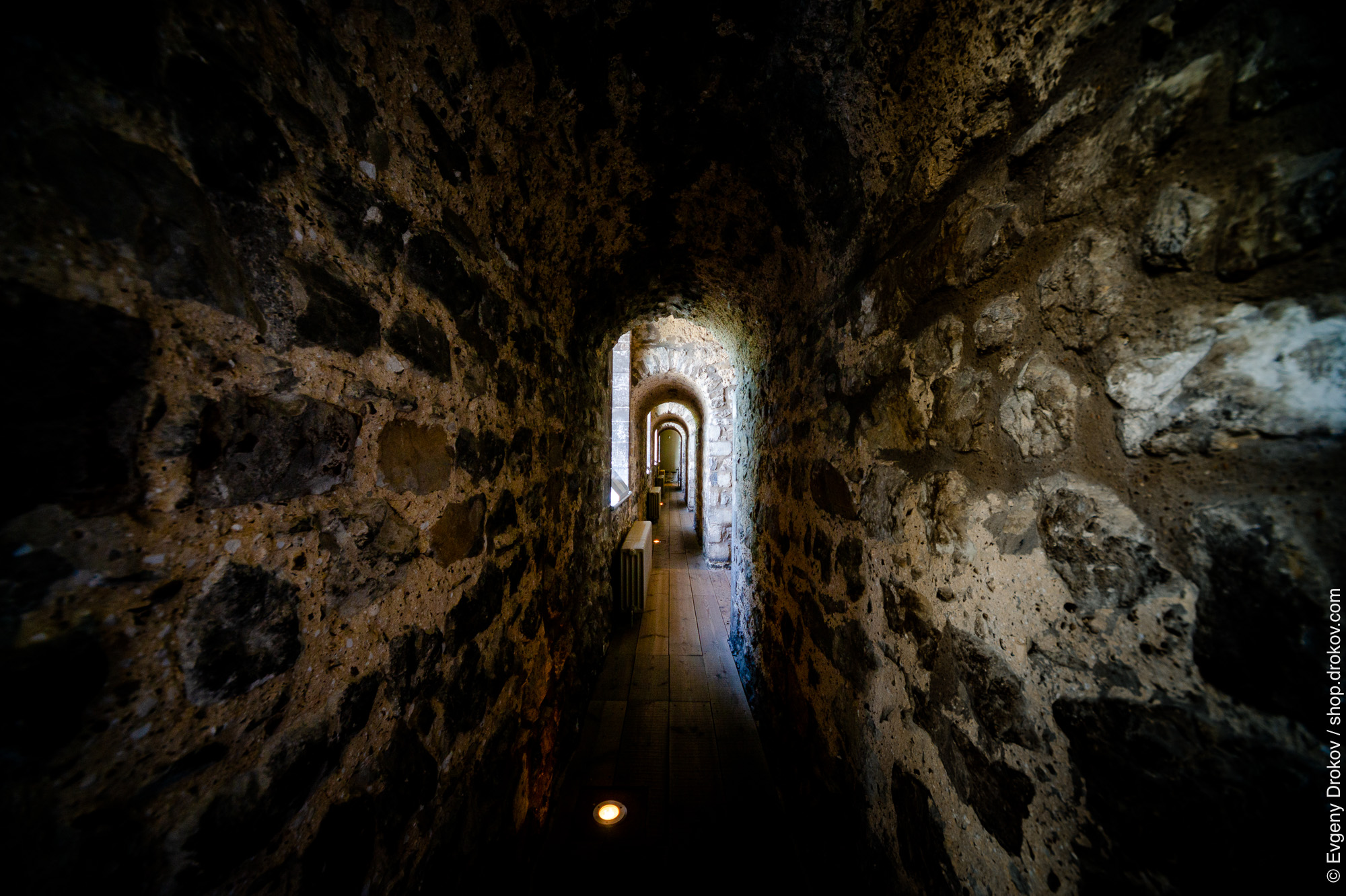Step into the ancient stone passageway of the Tower of London during a London summer. This view captures the enduring architecture and the atmospheric journey through history.