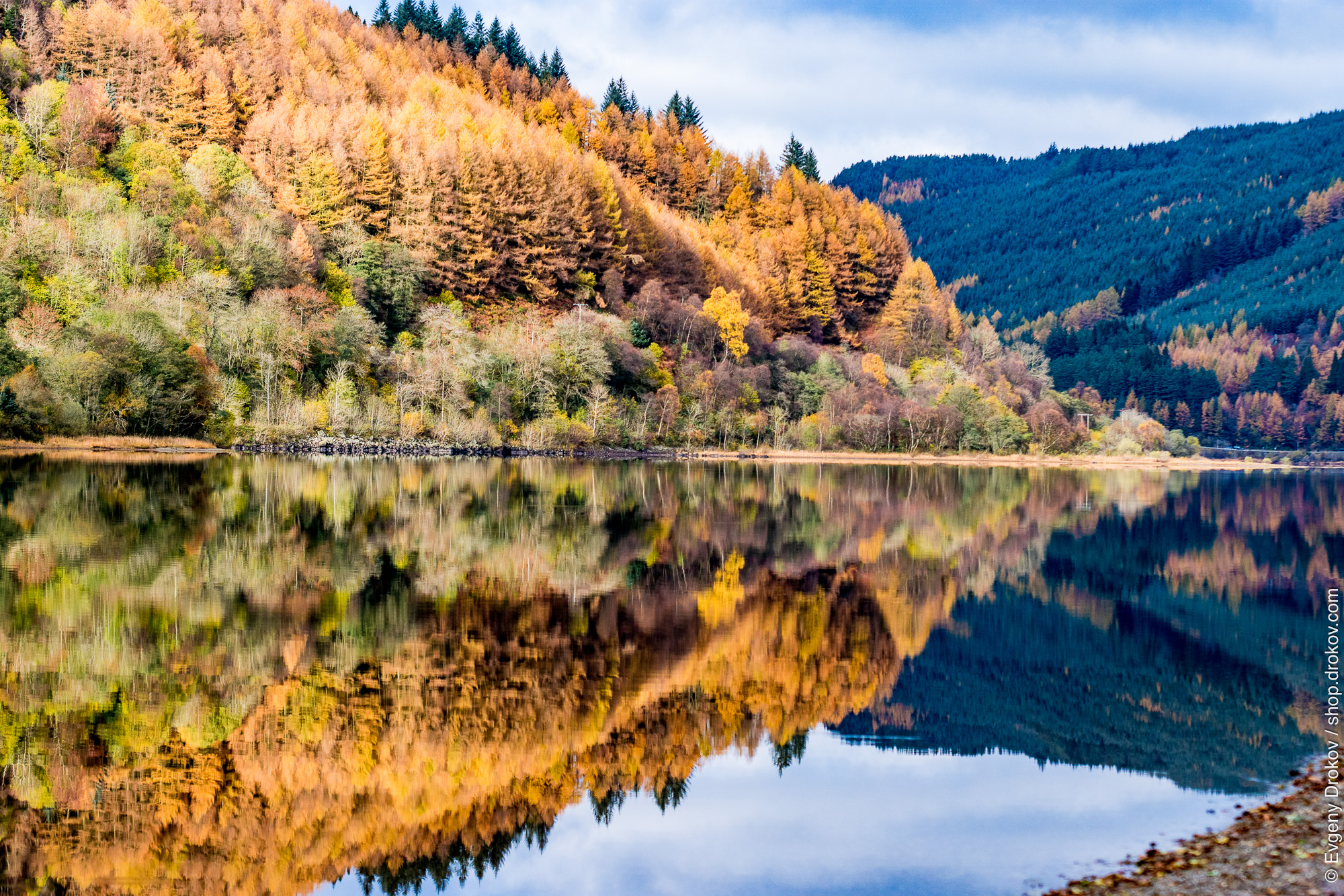 Autumn's fiery hues paint the Scottish Highlands, reflected in the still waters of a loch. This natural spectacle captures the essence of Scotland in November, showcasing the vibrant transition of nature before winter's embrace.