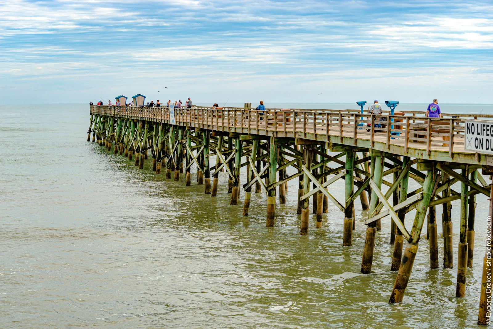 People enjoy a day at the Flagler Beach Pier in Florida. They are fishing and taking in the ocean views. This iconic landmark offers a classic Florida coastal experience.