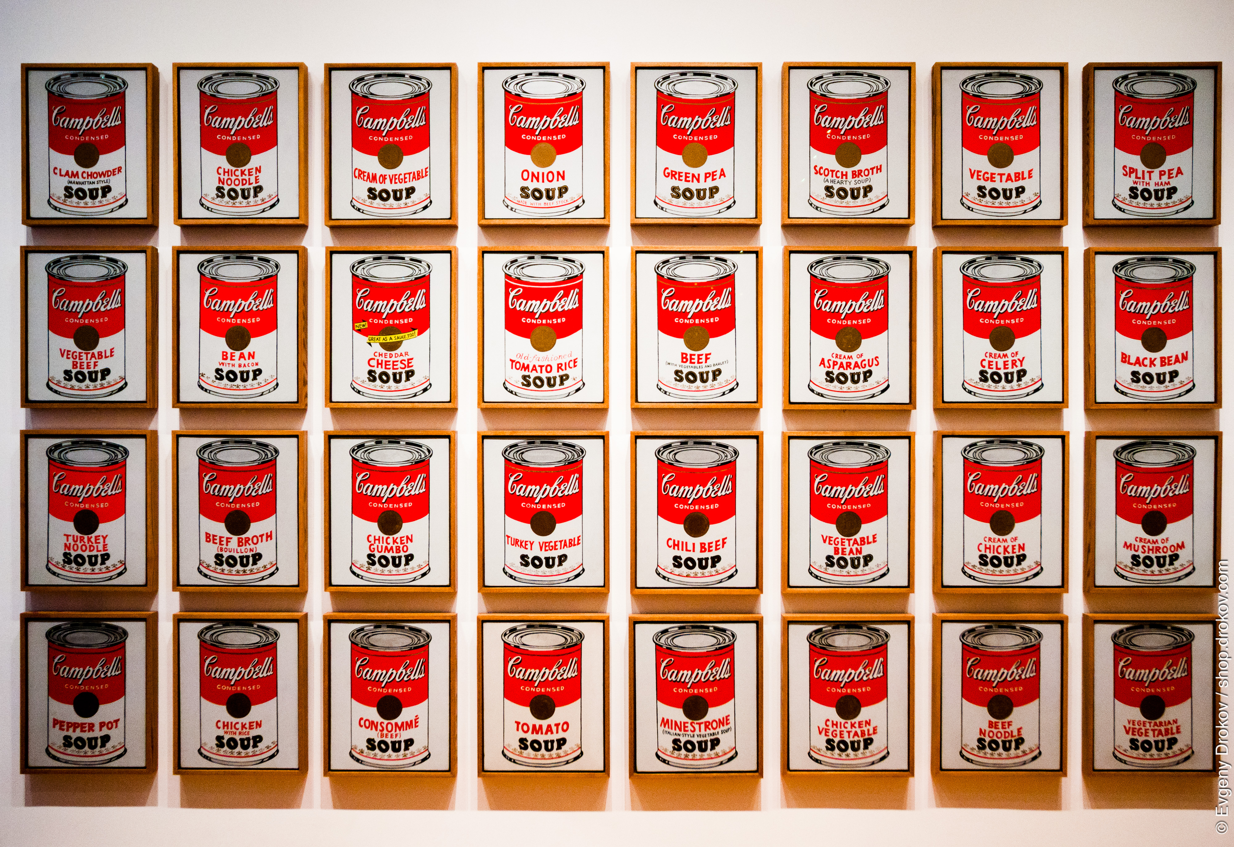 Andy Warhol's iconic Campbell's Soup Cans are displayed at MoMA in New York City. This series elevates everyday consumer products to the status of fine art, questioning notions of originality and mass production.
