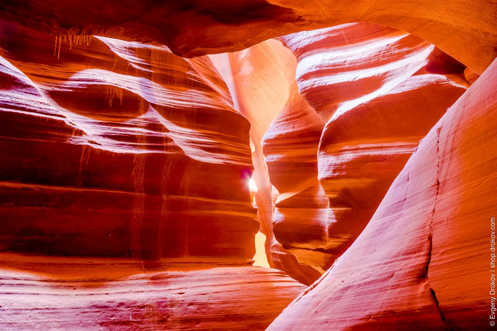 Sunlight streams through the sculpted sandstone walls of Antelope Canyon, a slot canyon on Navajo land near Page, Arizona. This natural wonder, carved by water and wind over millennia, showcases the breathtaking beauty of erosion. The vibrant colors and flowing forms are a testament to the powerful forces of nature.