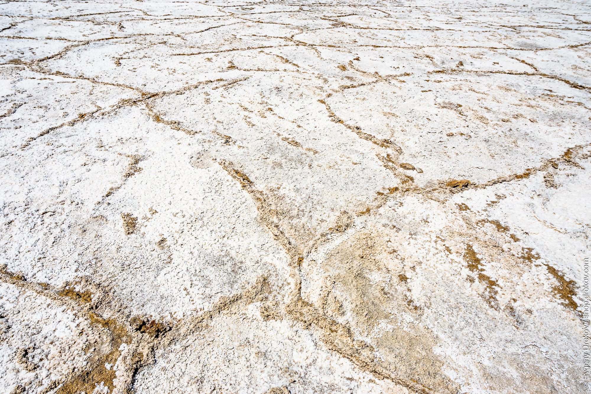 The cracked, salt-encrusted earth of Badwater Basin in Death Valley, California, USA, captured in August 2014. This stark landscape showcases the extreme arid conditions of the lowest point in North America, a testament to nature's raw power and beauty.