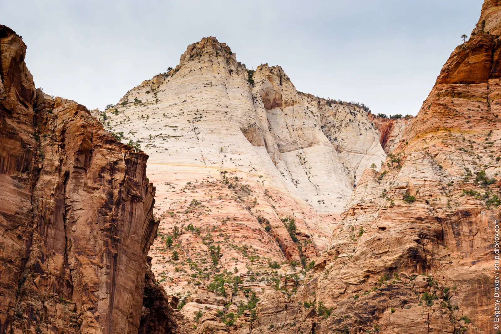 Towering sandstone cliffs dominate the landscape of Zion National Park, Utah, USA. Captured in August 2014 from Hurricane, Utah, this vista showcases the park's dramatic geological formations, a testament to millions of years of erosion.