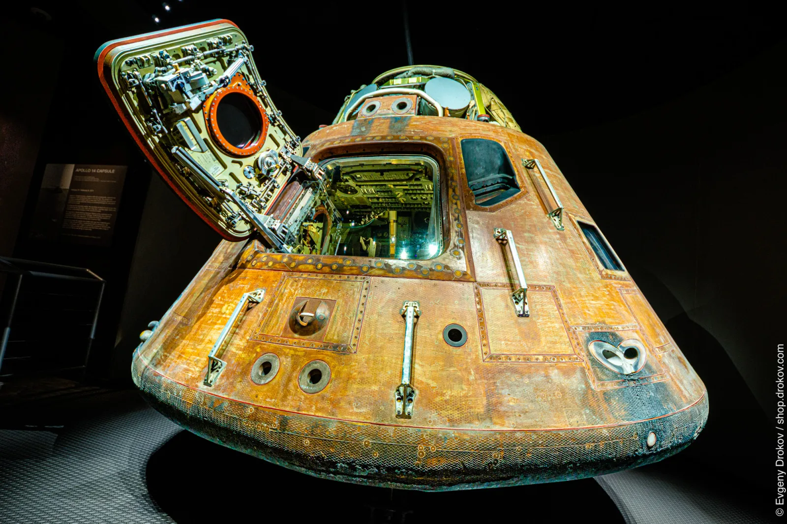 The Apollo 14 Command Module, a testament to human ingenuity, is displayed at Kennedy Space Center, Merritt Island, Florida. This artifact represents a pivotal moment in space exploration, showcasing the vessel that carried astronauts to the Moon.