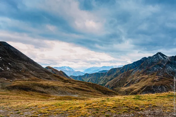 IcelandKeywords: clouds, grass, hills, Iceland, landscape, lichen, moss, mountains, person, rocky, tourism, travel, valley, volcanic